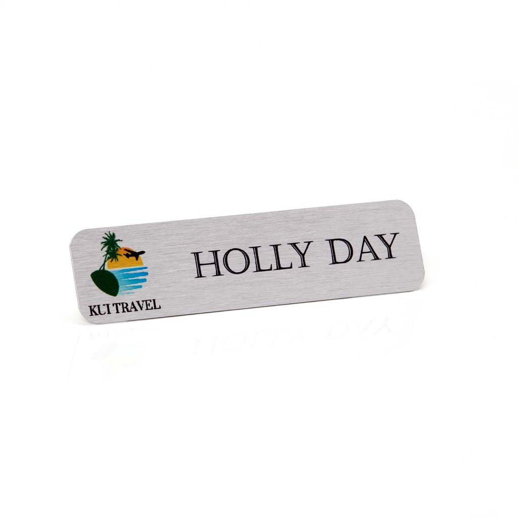 Each badge is printed in vibrant full colour directly onto the metal surface, ensuring crisp, professional results that work beautifully with the premium metallic finish. Lightweight and comfortable for all-day wear, it’s ideal for retail, hospitality, events, corporate settings, and other customer-facing environments.