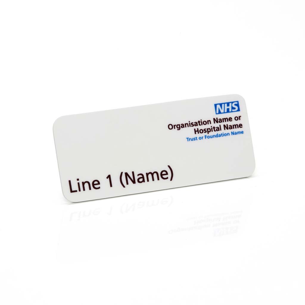 This version features a left-aligned single line of text, typically for the staff name, offering quick readability and a clean, modern layout suitable for all NHS departments and roles.